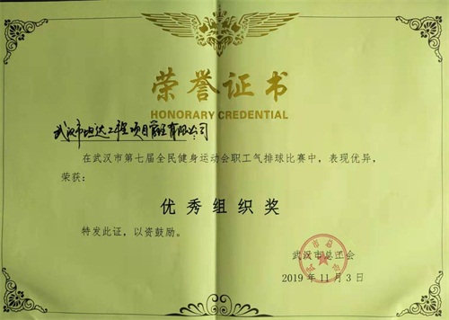 “今天大家在场上的表现都很好,你们获得这个奖项当之无愧”。2019年11月2日至3日,武汉市第七届全民健身运动会职工气排球比赛成功举办。对于首次组队参赛的金年会控股集团代表队(队员均为子公司武汉市坦达工程项目管理有限公司员工),市气排球协会秘书长吴方毓在第一时间给予这样的评价。